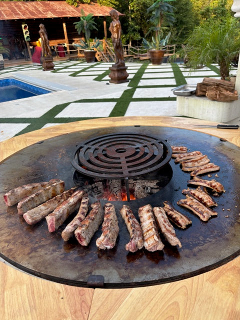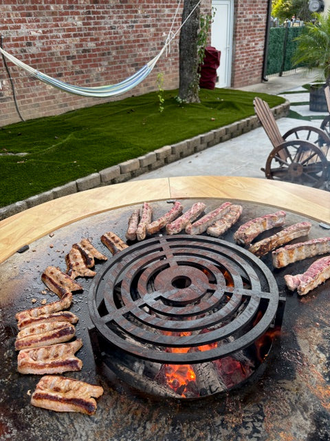 The COMMANDER Series redefines outdoor grilling with unmatched craftsmanship and performance. Available in two models, the COMMANDER 850 with its 33-inch round carbon steel cooking plate and the COMMANDER 1000 with a larger 39-inch plate, these grills are designed to bring people together. Each unit features a solid ½-inch thick beveled carbon steel cooking plate that directs grease toward the central fire hole for easy cleanup, while the sturdy base cabinet and fire bowl are built from heavy-duty steel and finished in sleek black.