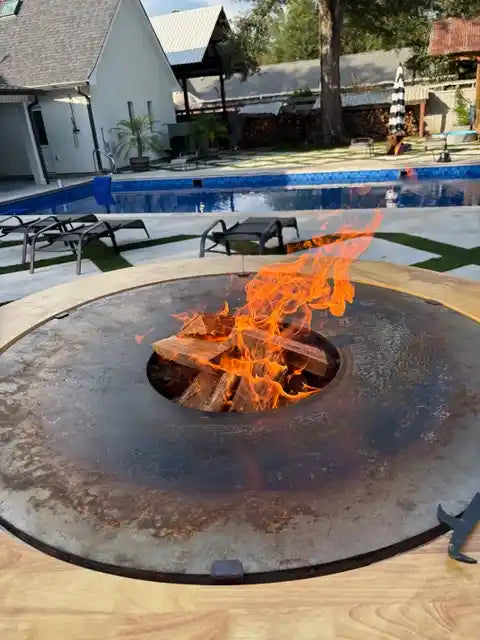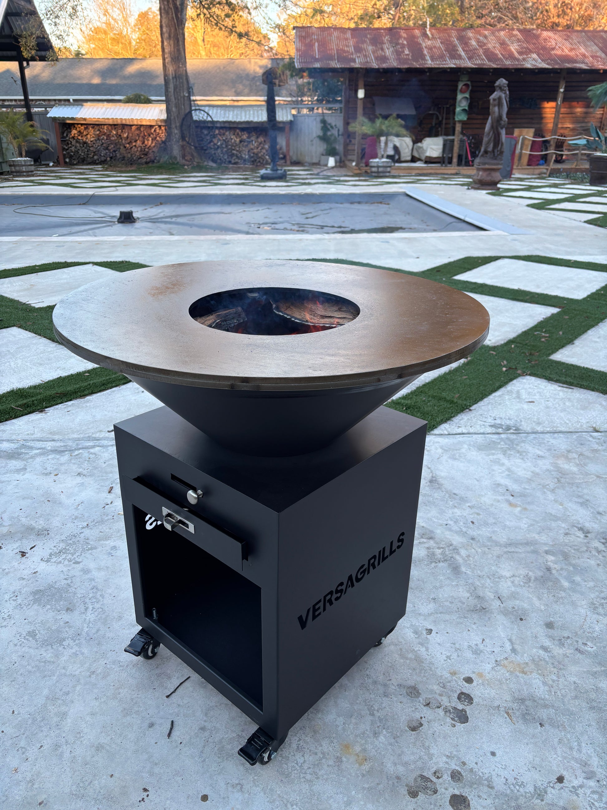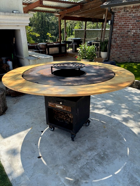 - Cooking Plate: 1/2" thick carbon steel (beveled toward the center fire hole for grease runoff)